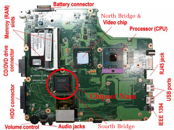 - Chipset nam thường là Chip do Intel sản xuất, trên thân Chip thường có ký