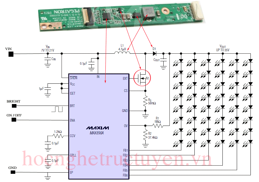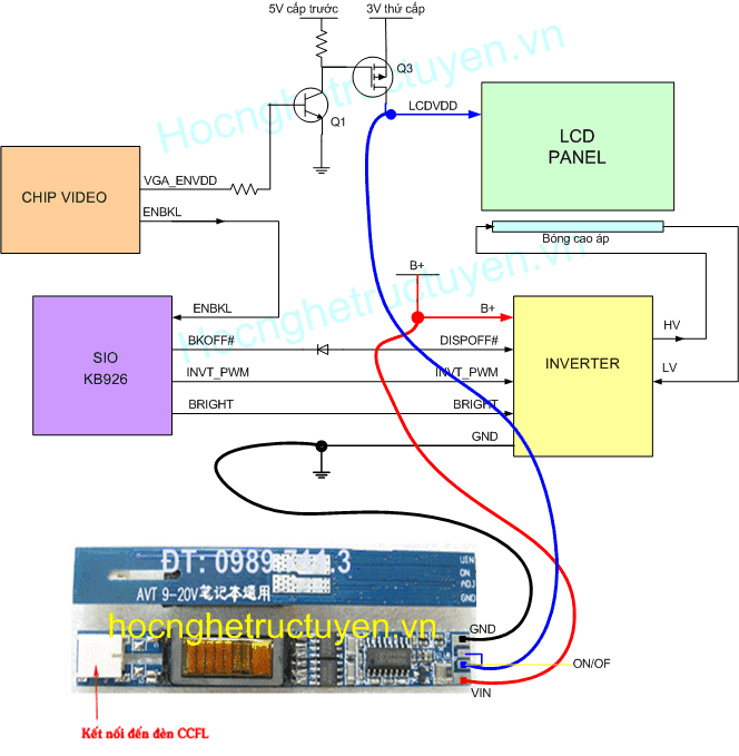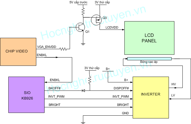cho bóng cao áp CCFL hoặc các đèn LED trên đèn hình nhằm tạo ánh sáng nền