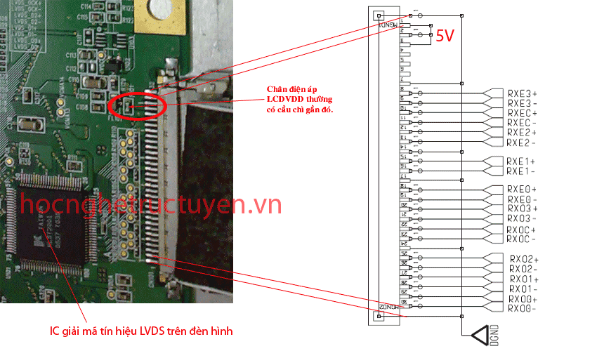 đường điện áp LCDVDD để cấp cho màn hình hoạt động.