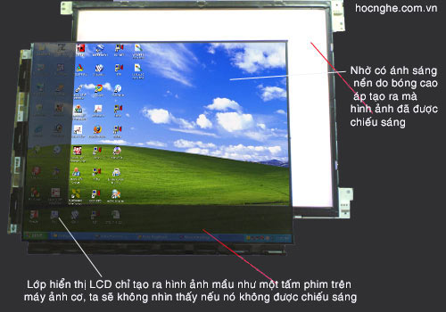 Hình ảnh và mầu sắc được tạo bởi ánh sáng nền soi sáng lớp hiển thị LCD