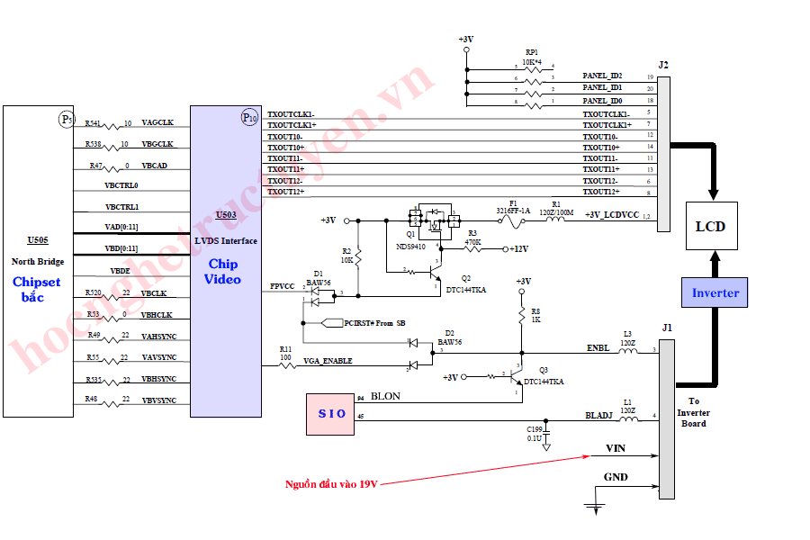 - Sơ đồ nguyên lý mạch Inverter điều khiển LED Backlight.